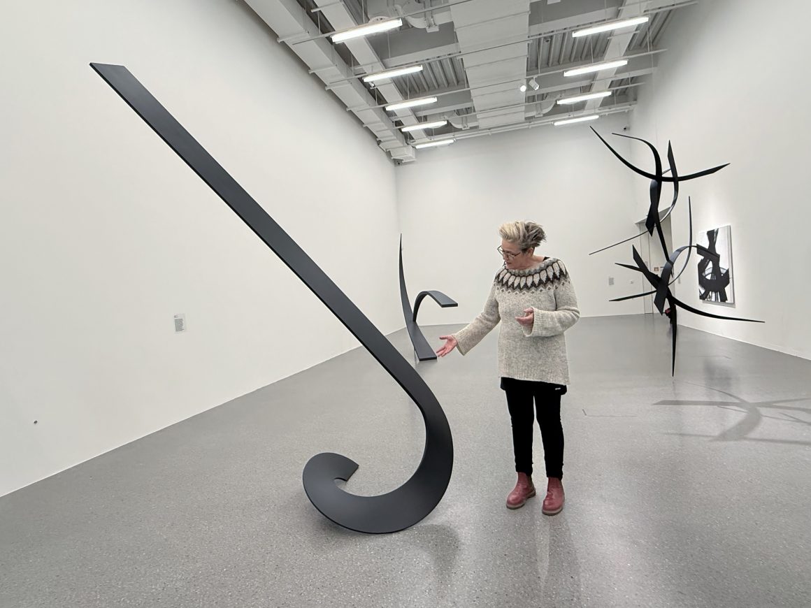 Der Ausstellungstitel „Gegenwärtige Bewegung“ hätte kaum besser gewählt ein können. Man betritt den großen Ausstellungssaal im Trakt B und wird erst einmal von einer großen Ruhe umschlungen. Das Auge streift umher, erfasst den Raum und dann plötzlich beginnen sich die Plastiken im Raum zu bewegen. Und je genauer man hinschaut, umso mehr Bewegung taucht…